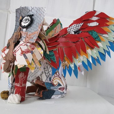 Mixed media on leather with wire26″ X 19″